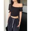Elevate your summer style with this trendy off-the-shoulder crop top, designed to keep you looking chic and comfortable. Crafted from luxurious milk silk and artificial silk material, this top offers a soft, flattering fit that gracefully contours your silhouette. The solid pattern provides a versatile look, while the short sleeves add a touch of breezy elegance. Intricate patchwork and quilted decorations lend a unique, stylish touch, making it a perfect choice for any casual outing or summer event.