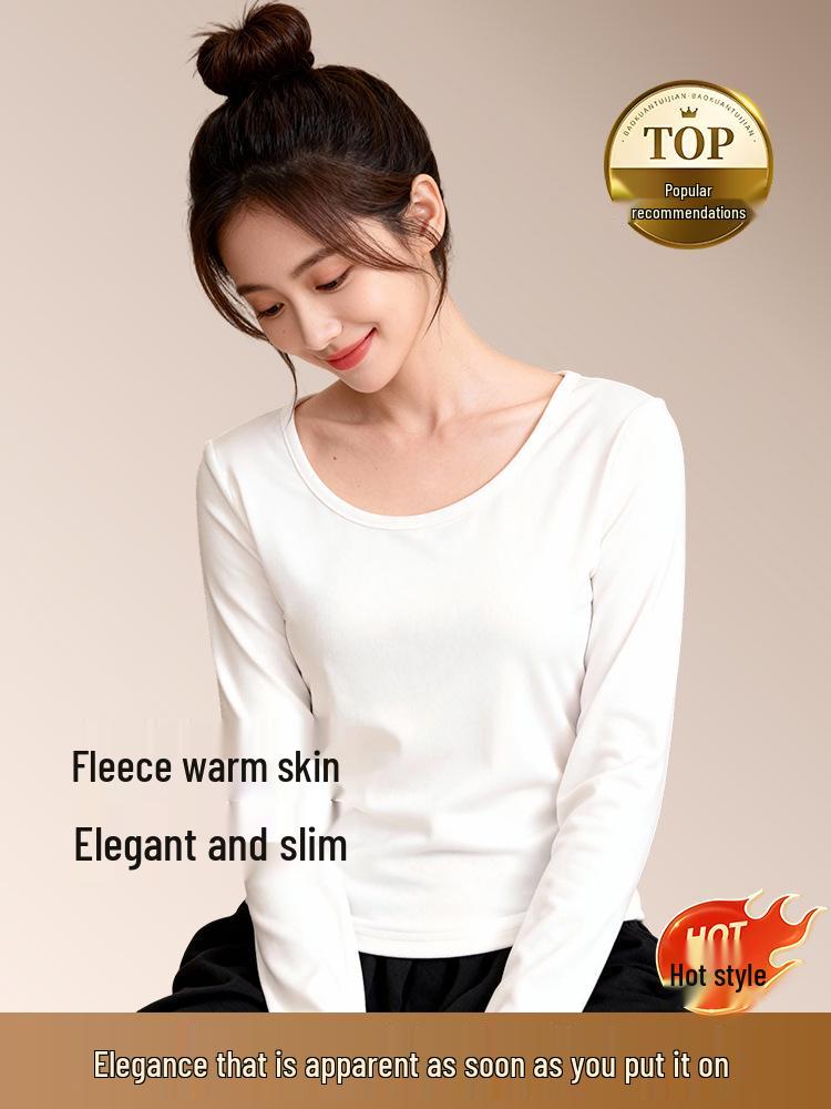 Stay warm and stylish this winter with this double-sided fleece top. Crafted from high-quality polyester fiber, it offers a cozy and soft feel against your skin. The solid pattern gives it a versatile and elegant look, while the slim fit design accentuates your silhouette. Featuring a U-neckline and long sleeves, this top combines comfort and chic effortlessly. A subtle print decoration adds a touch of flair, making it a perfect choice for both casual outings and more dressed-up occasions.