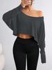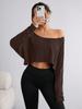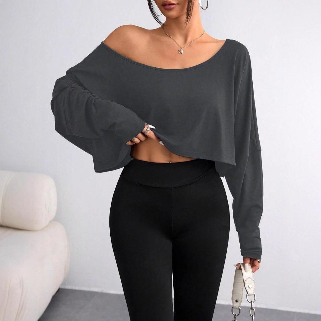 Experience ultimate comfort and style with this trendy off-shoulder top, crafted from high-quality polyester. Designed with a solid pattern and adorned with subtle print decorations, this versatile piece is perfect for any casual outing. The long sleeves offer added coverage, making it ideal for transitioning between seasons. Embrace a chic, relaxed look with this fashionable addition to your wardrobe.