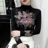 De Rong Women's Autumn/Winter Semi-High Neck Long-Sleeve Rhinestone T-Shirt