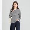 Introducing the Women's Slim-Fit Long-Sleeve Striped Tencel Wool Top from the 2026 Spring Collection. This elegant top combines the softness of a wool blend with a modern striped pattern, ensuring both comfort and style. Its slim-fit design and long sleeves enhance the silhouette, while the round neckline adds a touch of classic sophistication. Perfect for transitional weather, this top is a versatile addition to any wardrobe, easily pairing with both casual and formal outfits.