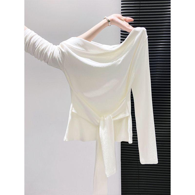 Women's Slim Fit Modal Cotton Long-Sleeve Tie-Up Top for Early Autumn