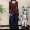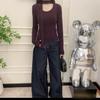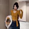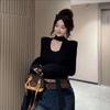 2025 Slim Fit U-Neck Fleece T-Shirt: Autumn/Winter Comfy Commute Style with Ribbon Accents