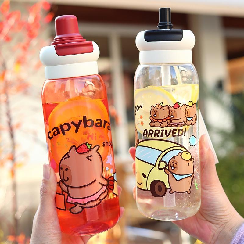 Capybara Plastic Water Bottle Portable Cartoon Large Capacity Handheld Straw Cup for Sports Travel Kids Drinkware Accessories