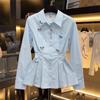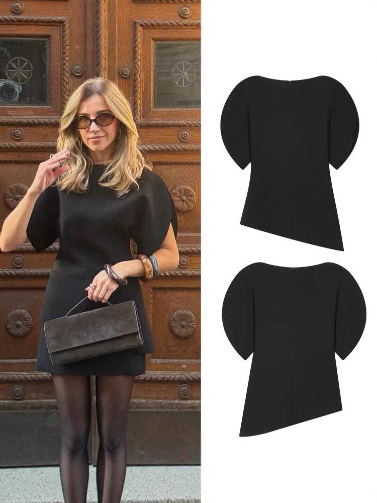 European Style Spring/Summer Women's Slim-Fit Round Neck Puff Sleeve Top