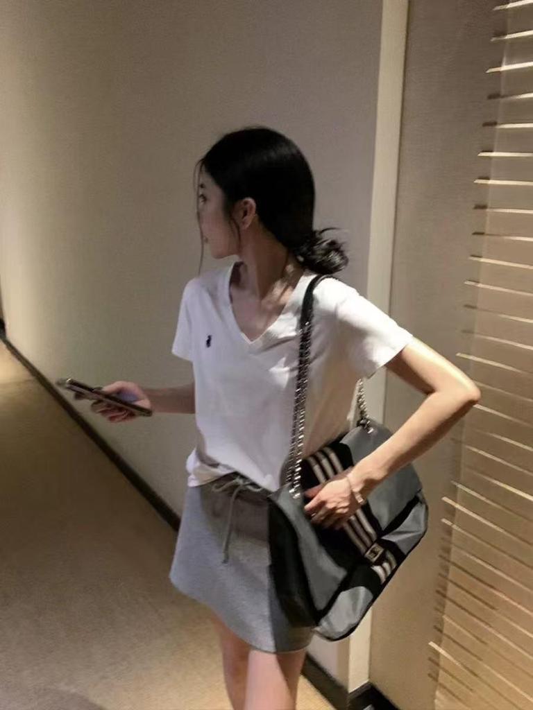 Women's Summer Slim Fit White V-Neck T-Shirt with Horse Embroidery - Pure Cotton, Regular Shoulder, Elegant Commuting Style