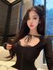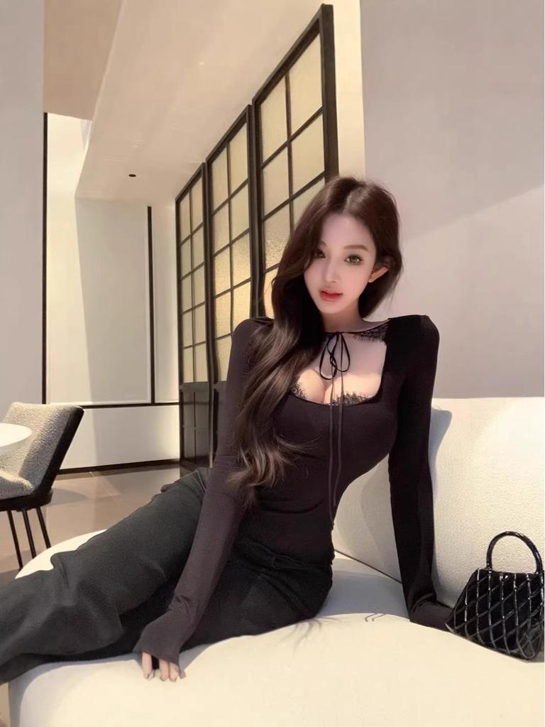 Spring 2026 Korean Yujie Style Black Lace-up Mesh Top Base Layer