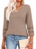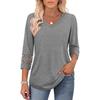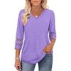 2026 Women's Fashion Solid Color V-Neck Loose Three-Quarter Sleeve Round Neck Hollow-Out Casual Top
