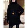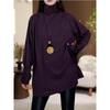 Plus Size Sequined High Neck Ruffle Long Sleeve Thickened Warm Mid-Length Top for Women