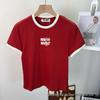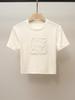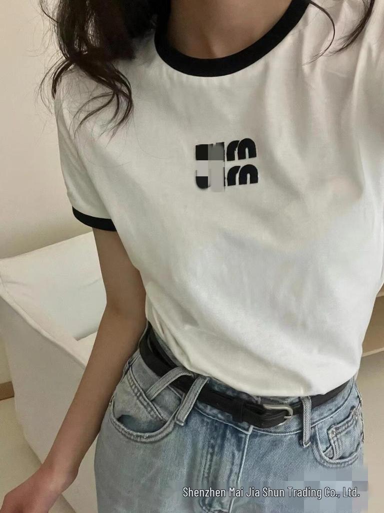 Miu Style Women's Pure Cotton Embroidered T-shirt - Early Spring Collection, Round Neck, Short Sleeve, Slim Fit