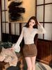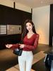 Lace Sexy V-neck Women's Long Sleeve T-shirt with Chest Pads