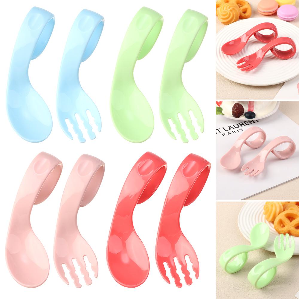 Portable Tableware Sets Antislip Utensils Baby Infant Training 2Pcs/Set Twist Fork Spoon Suit