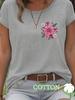 Embrace casual elegance with this colorful floral T-shirt, crafted from pure cotton for ultimate comfort and breathability. Featuring a round neckline and short sleeves, it effortlessly combines style and practicality. The delightful floral print adds a touch of vibrant charm, making it a perfect choice for everyday wear.