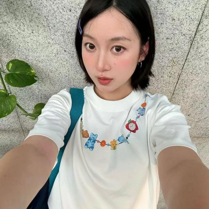 Retro Printed Short-sleeved T-shirt for Women Summer Loose and Versatile White Top
