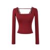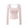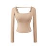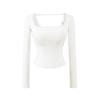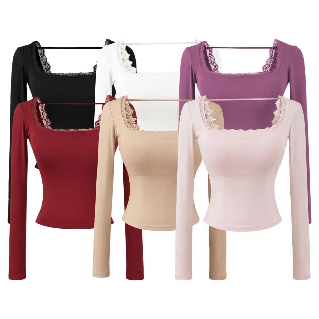 Elevate your wardrobe with this elegant long sleeve top, thoughtfully crafted from high-quality cotton for a comfortable and breathable fit. This slim fit design features a chic solid pattern with a sophisticated square neckline, making it a versatile addition for both casual and dressy occasions. The top is adorned with delicate lace trim, adding a touch of femininity and charm. Integrated chest pads provide subtle support and shaping, enhancing your natural silhouette. Perfect for transitioning between seasons, this top is an ideal choice for both spring and autumn.