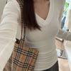 This women's base layer T-shirt is perfect for fall and winter, offering a slim fit design that comfortably hugs the body. Made from high-quality polyester, it ensures warmth and durability while providing a soft and smooth feel. The long sleeves and V-neckline add a touch of elegance, making it ideal for layering or wearing on its own. Its white color serves as a versatile addition to any wardrobe, pairing easily with various outfits.
