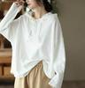 2025 Spring Retro Hooded Pullover: Women's Casual Loose Fit Solid Color Long Sleeve Sweatshirt