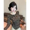 Chic Leopard Print Open-Back Tie-Up Long-Sleeve T-Shirt for Women - Autumn Edition