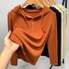 Introducing the ultimate blend of comfort and style for the cooler seasons: this women's brushed fleece inner hoodie is designed to be your go-to base layer. Made from luxurious derong material, this hoodie offers a soft, cozy feel against your skin. Featuring a solid pattern, it effortlessly complements any outfit while providing a chic and timeless look. The long sleeves ensure warmth, while the hooded neckline adds an extra touch of style and practicality. Perfect for layering under your favorite jackets or wearing as a standalone piece, this hoodie is a must-have for your autumn wardrobe.