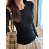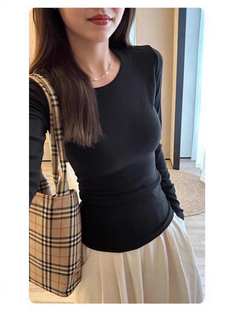 Introducing the perfect addition to your autumn and winter wardrobe: a Black Slimming Long-Sleeve Women's T-Shirt. Designed to flatter, this versatile piece is made from high-quality cotton, ensuring both comfort and durability. The solid pattern and round neckline offer a classic look, while the long sleeves provide extra warmth during cooler months. This T-shirt can be seamlessly worn as either an inner or outer layer, making it an essential staple for any outfit. Embrace style and functionality this season with this chic and timeless garment.