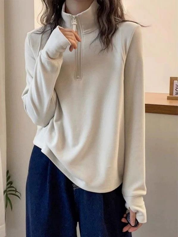 Experience the perfect blend of style and comfort with this European-style women's fleece pullover. Designed with a slimming fit, this versatile piece is ideal for transitioning through the seasons, suitable for spring, autumn, and winter. Made from high-quality derong material, it offers a plush texture that ensures warmth and coziness. The pullover features a solid pattern that adds a touch of elegance and simplicity to any outfit. Its long sleeves provide additional coverage, while the stand collar design offers a chic and modern look. Perfect for layering or wearing on its own, this pullover seamlessly integrates into any wardrobe.