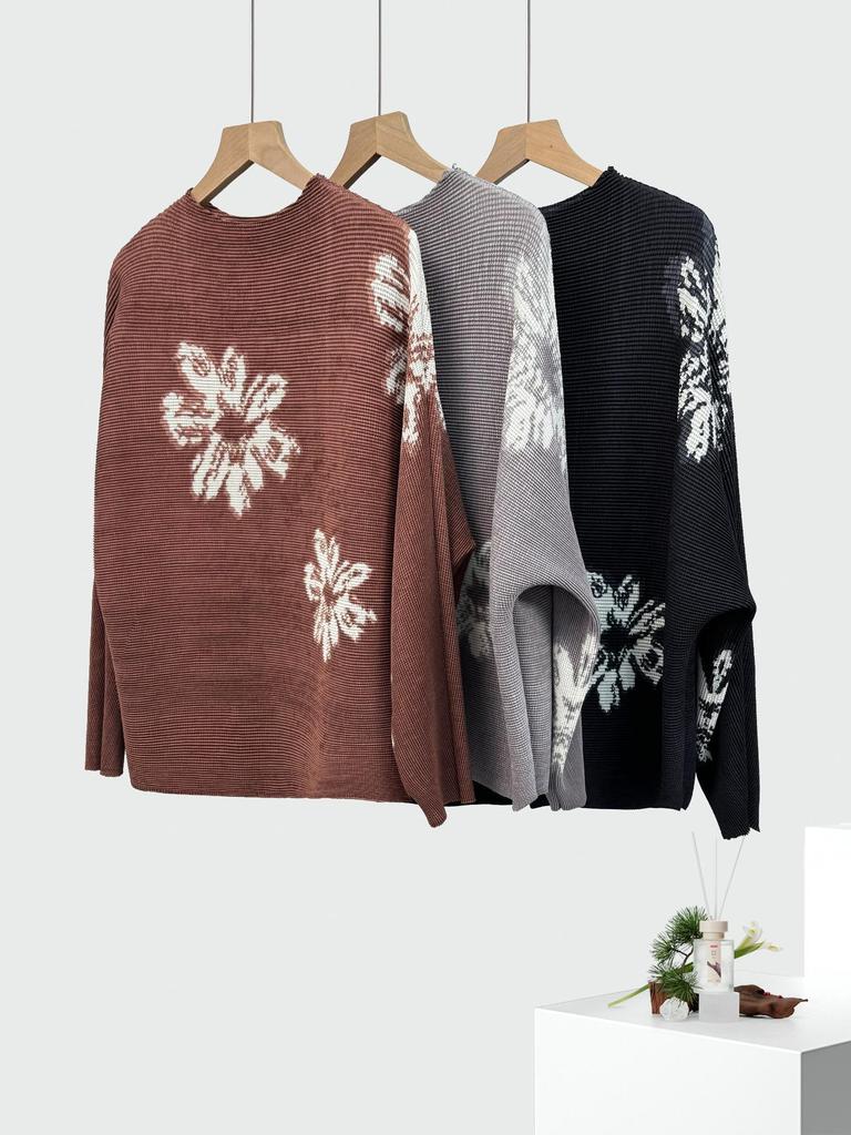 Women's High-End 2025 Printed Batwing Sleeve Plus Size Miyake Top