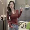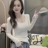 Velvet Lace Patchwork V-Neck Plus Size Slimming Top for Women - Spring/Autumn Long Sleeve, Figure-Flattering & Concealing.