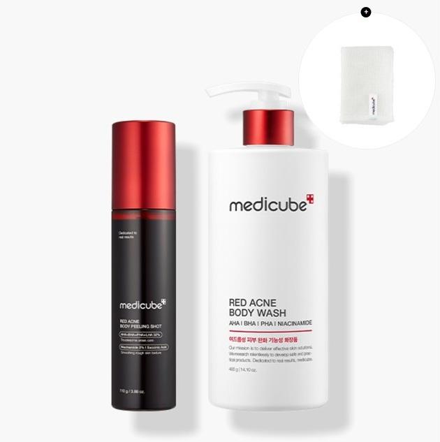 Upgrade your shower routine with the Red Acne Body Trouble Peeling Set, designed to target stubborn body breakouts and clogged pores. The deep-cleansing Body Wash removes excess sebum and impurities, while the intensive Body Peeling Shot exfoliates dead skin cells for smoother texture. Together, they help reduce body acne, refine rough areas, and promote clearer-looking skin on the back and chest. A complimentary shower towel enhances exfoliation for more effective cleansing.
