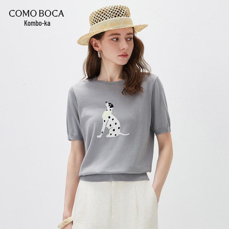Komomboka Women's Mulberry Silk Dog Embroidery Short-Sleeve Knit Top
