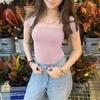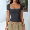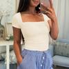 Embrace the retro-futuristic style with this women's top from the 2025 Autumn/Winter Collection. Crafted from cozy knitted fabric, it offers a soft and comfortable fit. The design features a classic solid pattern that adds versatility to your wardrobe. With its charming square neckline and short sleeves, this top effortlessly blends Y2K aesthetics with modern elegance, making it a perfect choice for fashion-forward individuals.