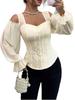 Elevate your wardrobe with this elegant off-the-shoulder shirt, designed to impress with its sophisticated flair. Expertly crafted from high-quality polyester, this shirt features a stunning floral jacquard pattern that adds a touch of timeless elegance. The square neckline beautifully complements the long sleeves, creating a chic silhouette that pairs perfectly with its slim fit design. Intricate embroidery details enhance its refined appearance, making it an ideal choice for any occasion where you want to stand out with style and grace.