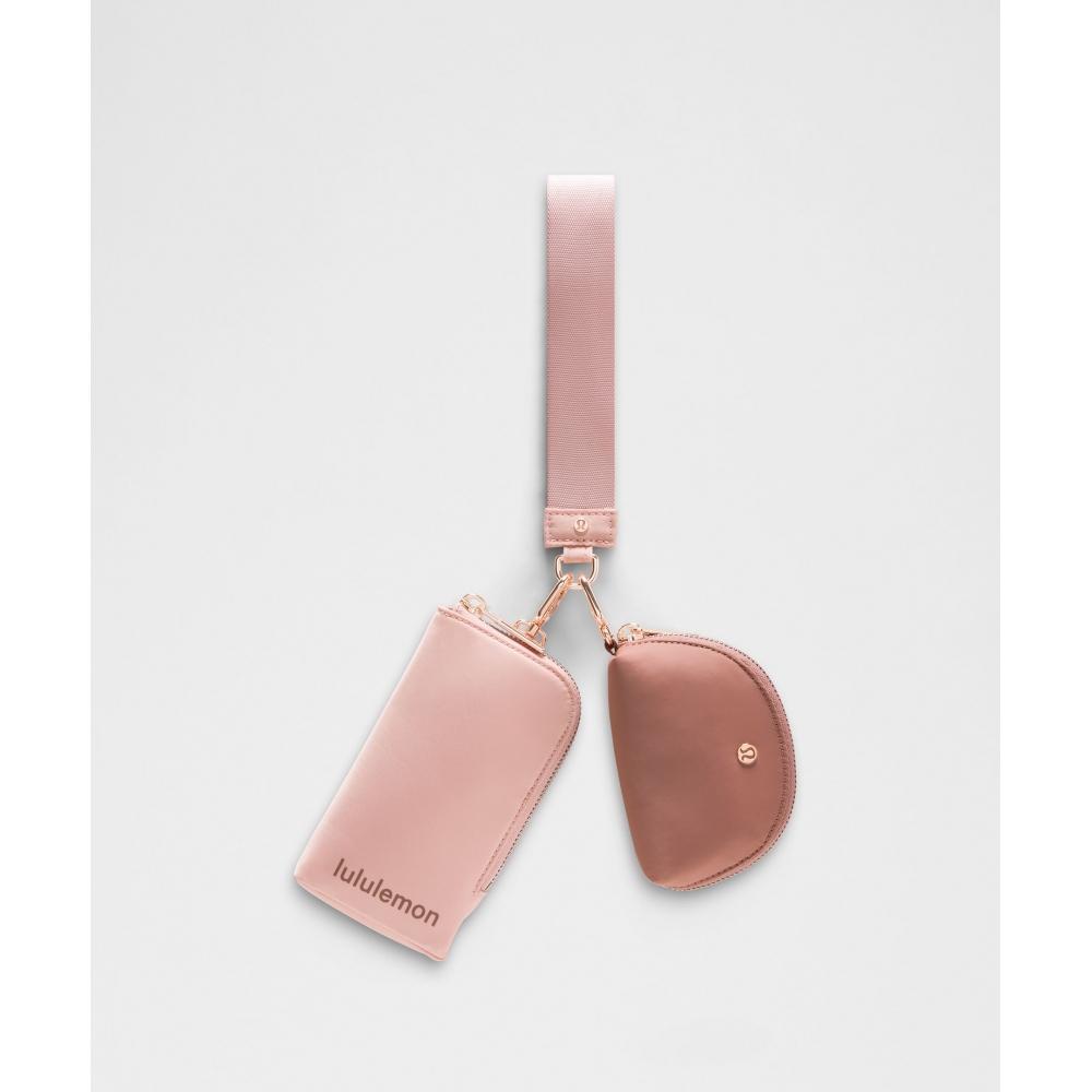 Lululemon Dual Pouch Wristlet Wallet Tea Rose Red Clay