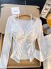 Korean Style Lace Patchwork Faux Two-Piece Long Sleeve T-shirt for Women - Autumn/Winter Spicy Girl Inner Base Layer Top