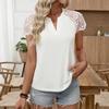 Embrace elegance and comfort with this stylish women's casual loose top, perfect for the 2026 summer season. Crafted from soft and breathable polyester, this short sleeve t-shirt features a timeless solid pattern, complemented by a delicate lace stitching decoration. The flattering V-neckline adds a touch of sophistication, while maintaining a relaxed and airy fit for everyday wear.