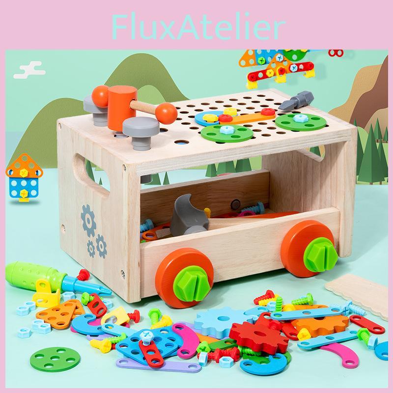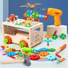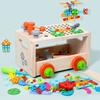 This children's wooden building toy set features a variety of hand tools and nut assembly activities, promoting fine motor skills and problem-solving. The set includes durable wooden components and a power drill option. It encourages hands-on construction and imaginative play. Suitable for indoor use, it is easy to clean with a damp cloth.