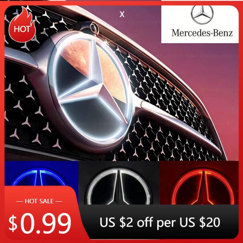 2025 Hot Car Sticker Car Front Grilled Star Emblem LED Illuminated Logo White Blue Red Light for Mercedes Benz W245 GLK 2006-201