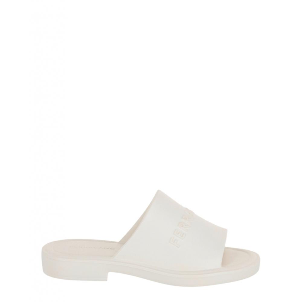 Elevate your casual aesthetic with Ferragamo's 3D Logo Slides, showcasing a refined white rubber design. The round toe and block heel offer just the right amount of height, while the 3D logo on the vamp adds a touch of sophistication. These slides, characterized by their smooth finish, are perfect for effortless styling and comfort. - Heel height - 1.0625" - Platform height - 0.625" - Upper - 100% Rubber - Lower - 100% Rubber - Made in Italy - Care - Spot clean