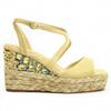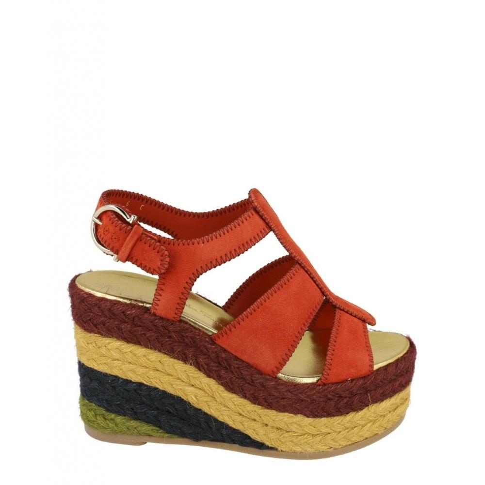 Ferragamo presents these exquisite wedge espadrillas, designed to elevate your summer wardrobe. Crafted in Italy, they feature a luxurious multi-strap upper in soft suede, adorned with whipstitch detailing and a stunning gold-tone Gancini buckle. The braided jute wedge heel not only adds height but also brings a unique texture to the piece, perfectly complementing the round toe design. Ideal for chic daytime outings or elegant evening events, they epitomize sophistication in footwear. Specifications - - Heel Height - 4 inches - Platform Height - 2 inches - Closure - Side pin buckle - Upper Material - 100% Kid Leather, Soft Suede - Lower Material - 100% Rubber - Care Instructions - Specialist clean only - Origin - Made in Italy