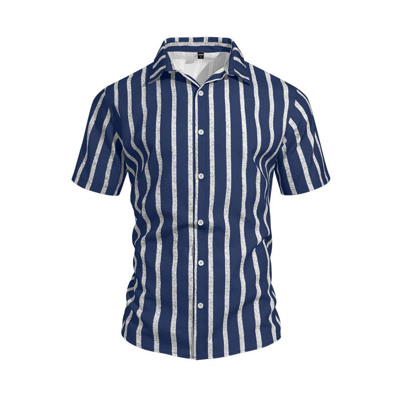 Summer Men's Fashion Striped Loose Short Sleeve Shirt Casual Breathable Lapel Button Shirts Soft and Comfortable Linen Blouse