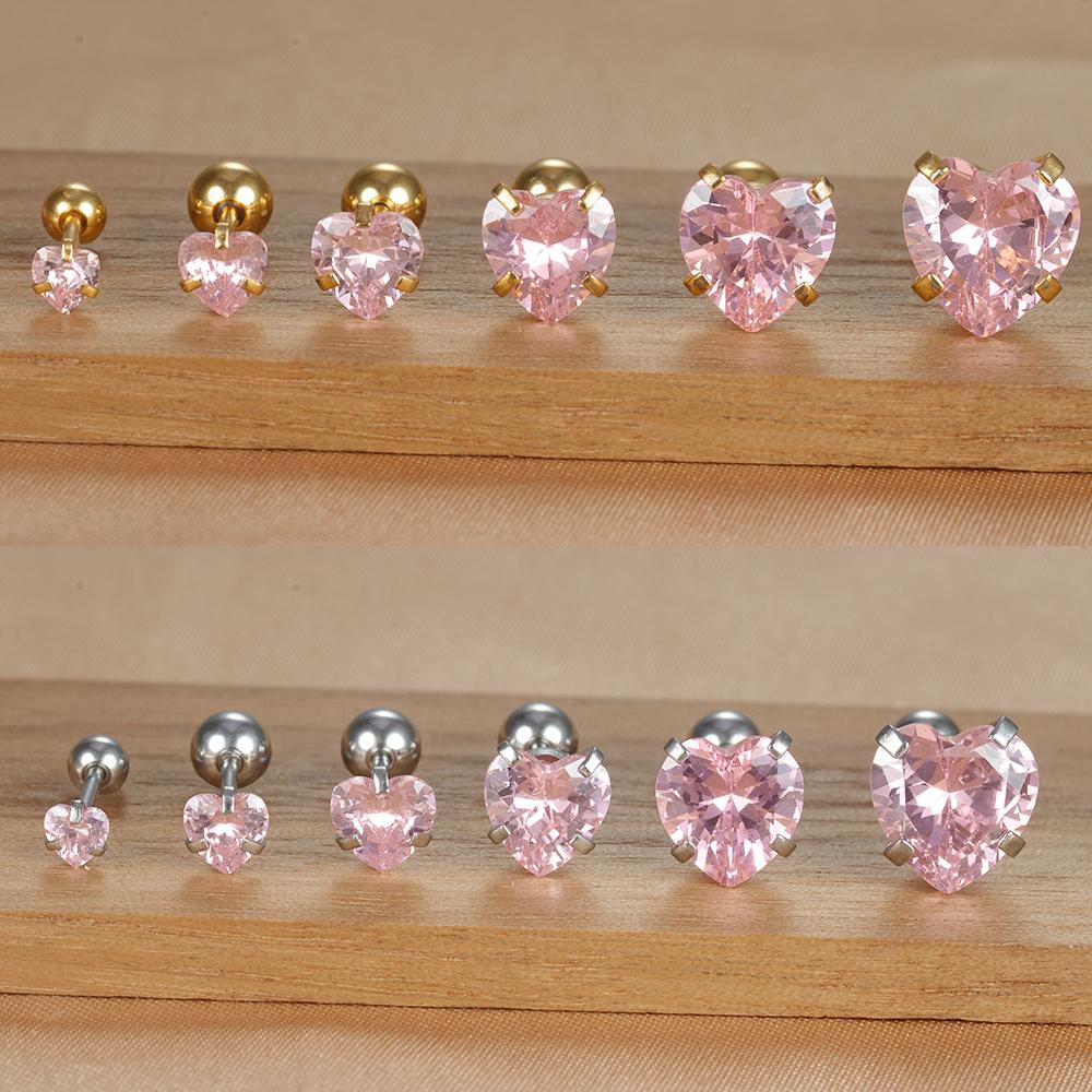 1 Adet Sade Pembe Zirkon Kalp Küçük Küpe Moda Minik Paslanmaz Çelik Charm Helix Kıkırdak Piercing Takı