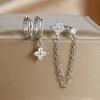 3PCS New Design Four Crystal Flower Pendant Hoop Earrings Set For Women Double Ear Hole Chain Stud Earring Piercing Jewelry