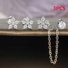 3PCS Fashion Stainless Steel Zircon Flower Stud Earrings Set for Women Double Hole Chain Helix Tragus Cartilage Piercing Jewelry