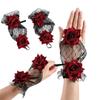 Stretch Rhinestones Lace Embroidered Stretch Garter Lace Leg Ring Set Red Rose Flower Garters