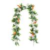Celebrate spring with this charming easter garland, featuring pastel eggs, vibrant orange carrots, delicate flowers, and green leaves artfully suspended from a cane. Perfect for adding festive cheer to your mantel, fireplace, wall, or dining table, this lightweight and flexible garland is easy to hang and complements various decorating styles, including rustic themes.