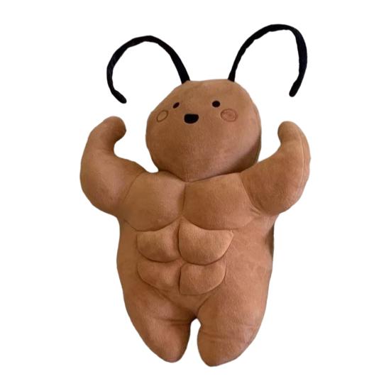 Unique Muscle Cockroach Design: Featuring an imaginative and humorous design, this plush toy showcases a cockroach with exaggerated muscles and defined abs. This creative twist adds playful charm and unexpected fun to your decor. It's sure to spark smiles and conversations, making it not just a pillow but a statement piece that brightens any room.
