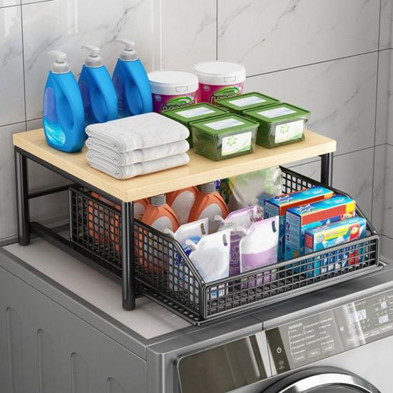Constructed with a durable hardwood top and a solid metal frame, this storage rack features stable performance and long service life to meet your daily kitchen use needs. The built-in wire basket drawer slides smoothly and flexibly, allowing you to easily take and place stored items, and it can be flexibly used to organize spices, cooking oils, fresh ingredients and other commonly used kitchen supplies. With an overall size of 14.57 inches wide x 10.43 inches deep x 8.27 inches high, it provides ample storage space while occupying only a small area of the countertop, perfectly balancing practical storage function and space-saving design for your kitchen.
