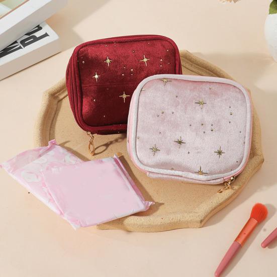 Spacious Yet Compact Design: This velvet cosmetic bag offers a roomy interior that comfortably fits sanitary napkins, lipsticks, eye shadows, and other daily or travel essentials. Its compact size ensures easy portability while keeping your items neatly organized and readily accessible during any outing or trip.
