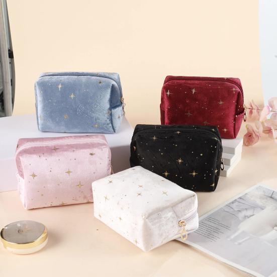 Charming Velvet Exterior: Crafted with a soft velvet material adorned with an adorable star pattern, this cosmetic bag combines style and function. The unique design adds a touch of elegance and personality, making it a fashionable accessory that stands out wherever you go.