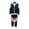 Step back into the vibrant 80s with this disco tracksuit, featuring classic long sleeves, bold color blocking, and a zippered jacket paired with high-waisted trousers. Crafted from lightweight, breathable polyester, this retro sportswear ensures comfort, durability, and skin-friendly wear without fading.