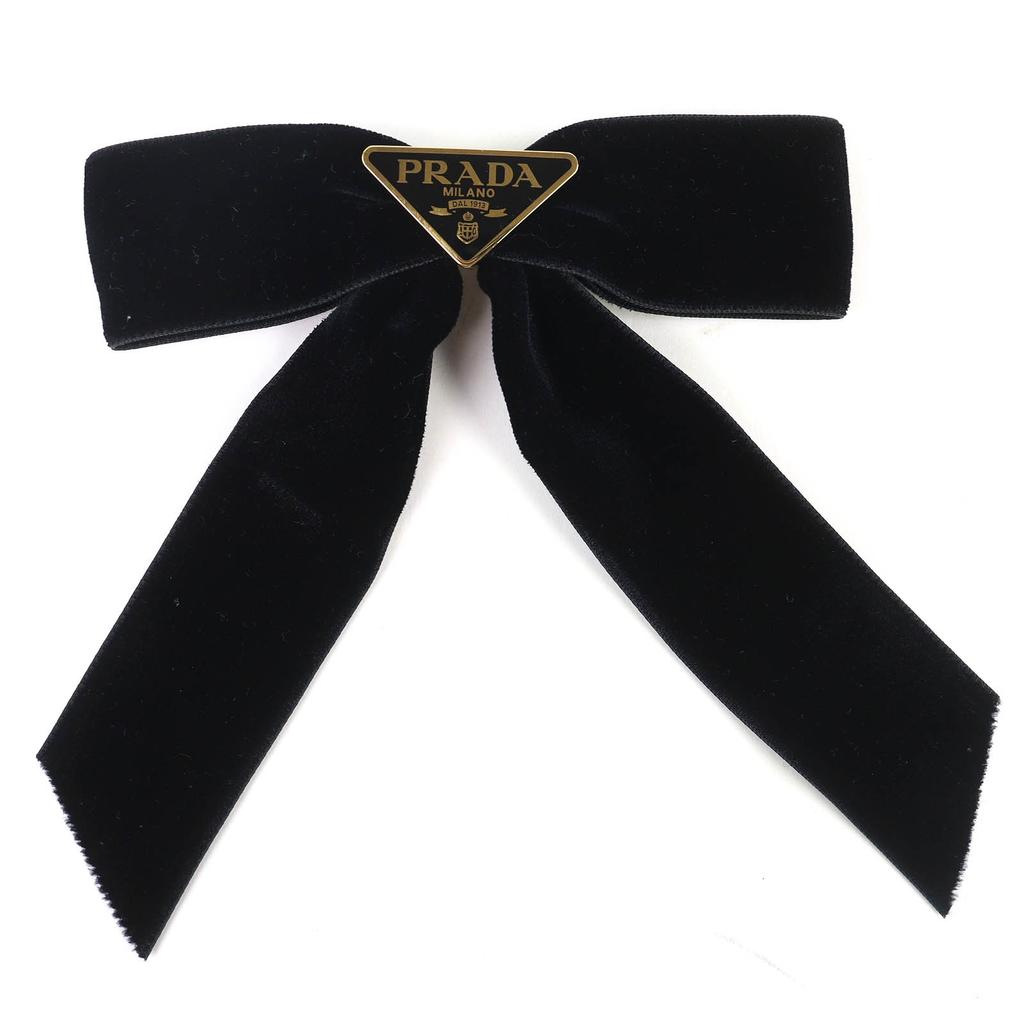 Great PRADA Triangle Logo Triangle Plate Velvet Ribbon Barrette black 1IF154 Used
